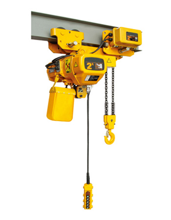 低凈空環(huán)鏈電動葫蘆適用于廠房高度較低又對提升高度有嚴格要求的工作場所使用,尤其適用于臨時搭建的廠房內(nèi)或者在其內(nèi)需要擴大有效起升空間的場所。低凈空環(huán)鏈電動葫蘆由2個跑車以及一個電動主機組合而成。