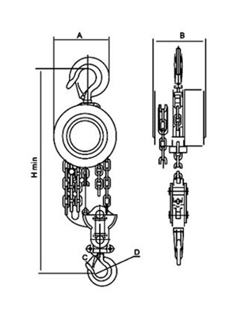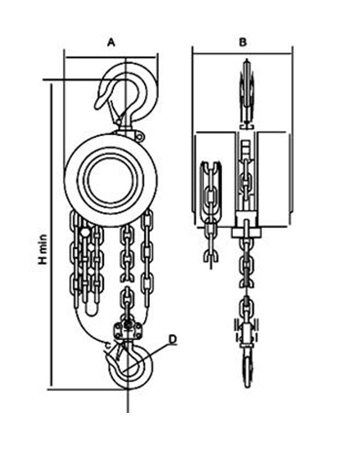 通過曳動手鏈鏈條、手鏈輪開始轉動,摩擦片棘輪、制動器座(被壓成一 -體) 共同旋轉,五齒長軸便轉動片齒輪、四齒短軸和花鍵孔齒輪。從而,裝置在花鍵孔齒輪上的起重鏈輪就帶動起重鏈條,平穩地提升重物。